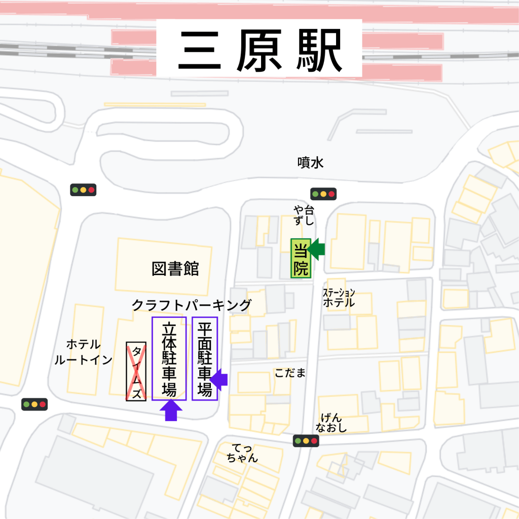 - 当院前は、駐車禁止区域です。下記の駐車場をご利用下さい。
