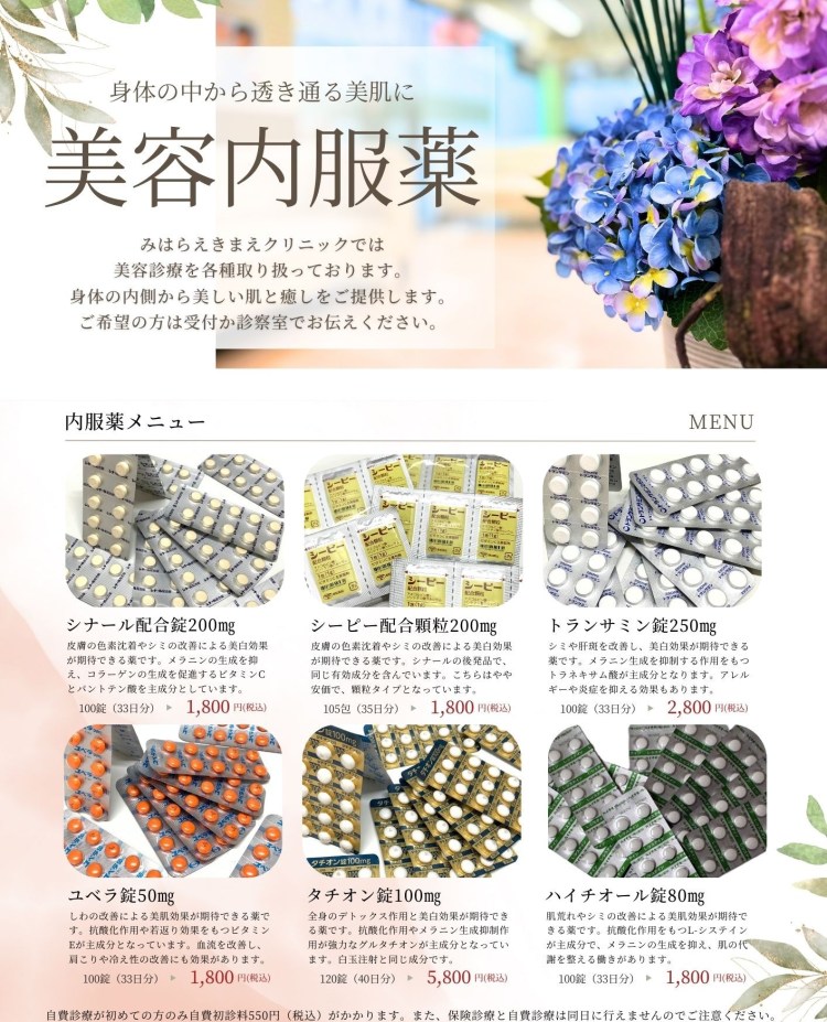 日本で認可されている薬剤を、美容目的に自費で処方をおこなっております。